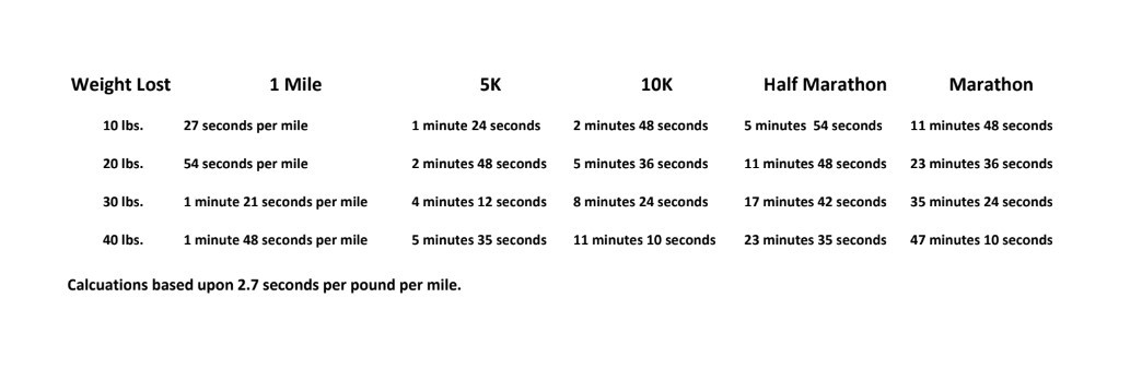 Curious about how weight loss could affect your race time? Here’s a handy calculator that our owner, Mike Ward, has benefited from while training for the Boston Marathon.